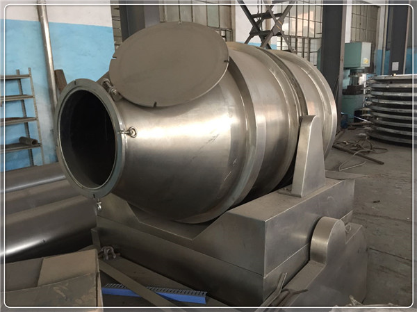 二維運動混合機廣泛用于醫(yī)藥、化工、食品、染料、飲料、化肥、農(nóng)藥等行業(yè)。尤其適用于大噸位(1000-10000L)各種固相物料的混合。本機混合筒在轉(zhuǎn)動的同時又參與擺,使筒中物料得以充分混合?;旌贤驳某隽峡谄x混合筒圓部分的中心線,使該機具有混合迅速、混合量大、出料便捷等特點。