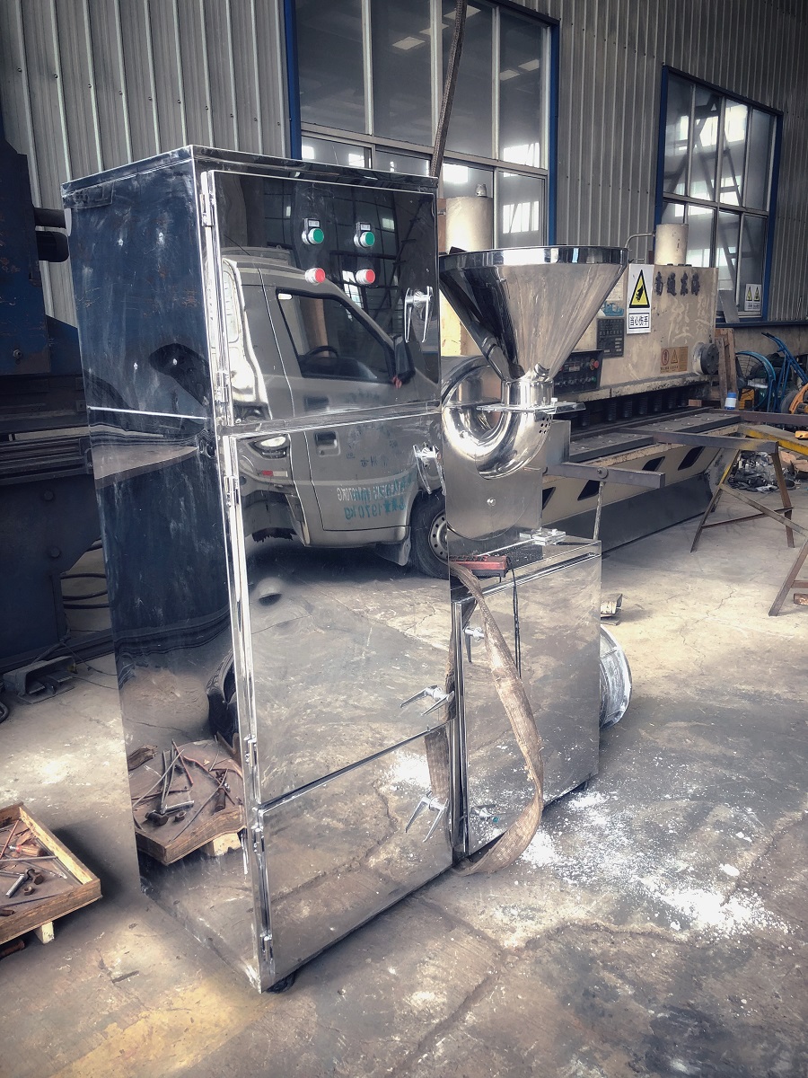 以下6張圖為40BX高效粉碎機(jī)帶除塵的整圖以及細(xì)節(jié)圖,圖片均為當(dāng)天現(xiàn)場(chǎng)制作車間拍攝