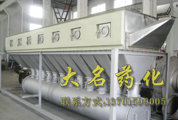 潔凈的熱風經(jīng)閥板分配進入床體內(nèi),從加料器進入的濕物料被熱風形成沸騰狀態(tài)。由于熱風與物料廣泛接觸,增強了傳熱傳質(zhì)的過程,因此在較短時間內(nèi)就可干燥。如用連續(xù)型,物料從床體的一頭進入,經(jīng)過幾十秒至幾分鐘沸騰干燥,自動從床體另一頭流出。本設(shè)備一般進行負壓操作。